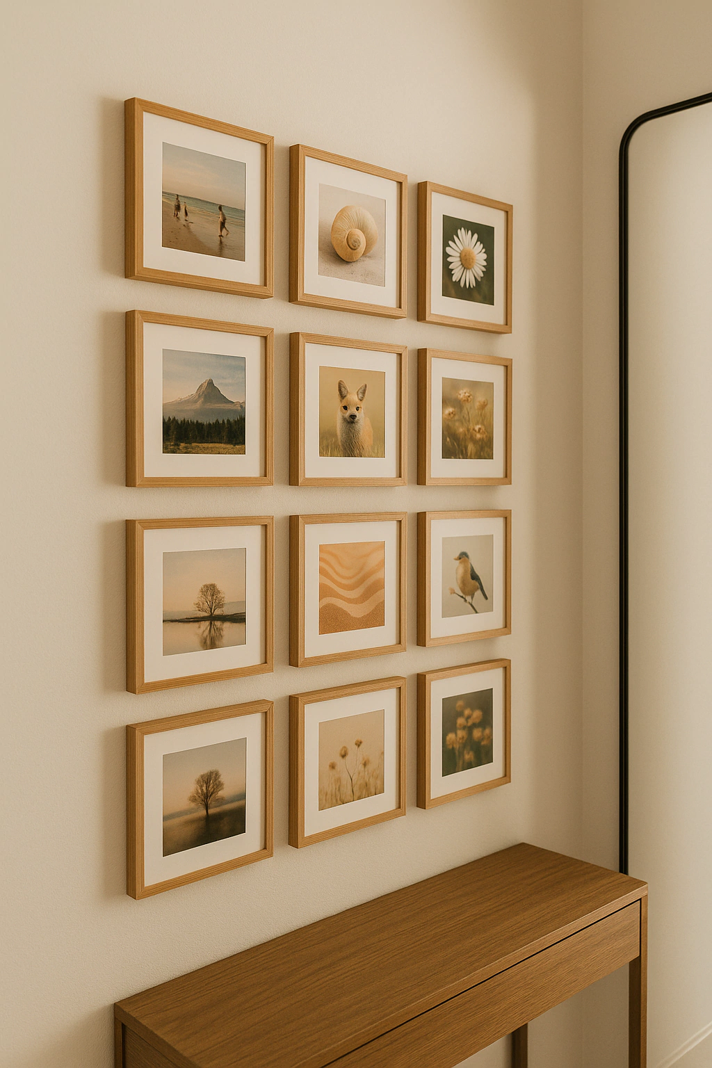 Os quadros acompanham passe-partout de 5cm de largura para fotos no tamanho 10x10