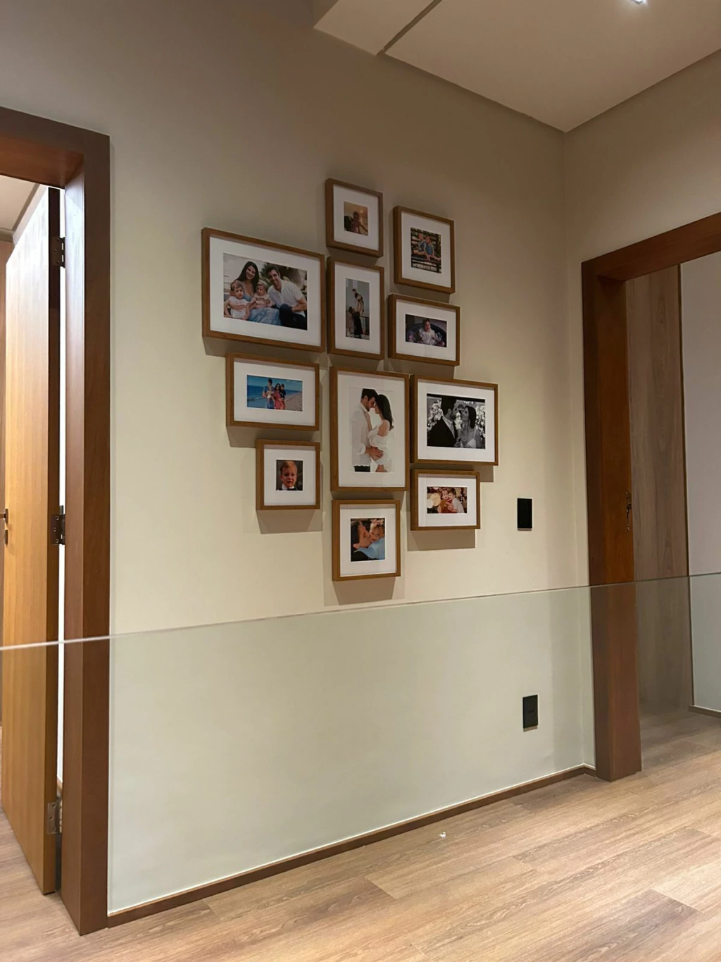 Para facilitar essa tarefa, enviamos uma sugestão de instalação com medidas, altura e espaçamento ideal entre os quadros.
